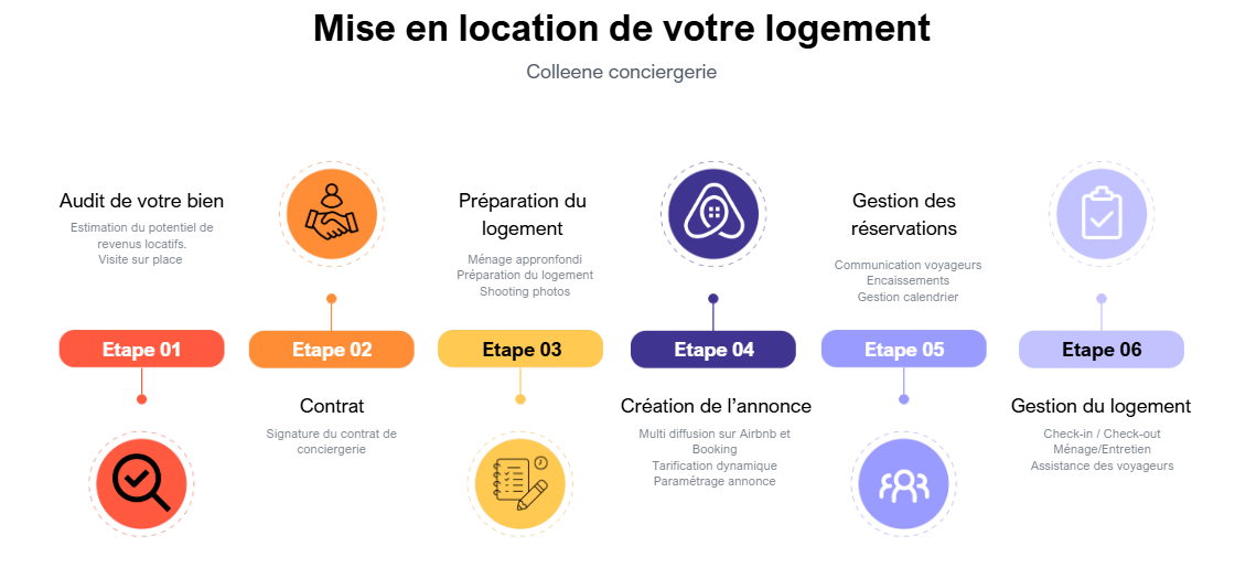 COLLEENE Conciergerie vous accompagne localement, de la mise en ligne à l’accueil des voyageurs, avec un seul objectif :