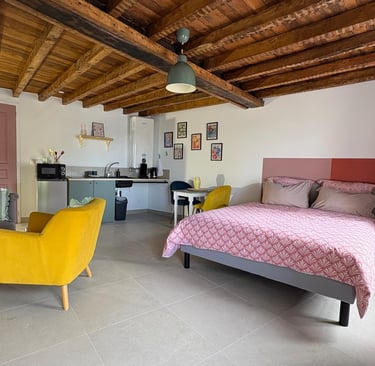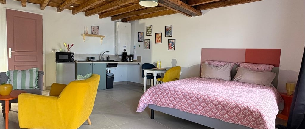 Découvrez notre "Pop studio" le temps d'un court séjour dans notre magnifique région du Perche. Au 2ème étage d'un immeuble rénové avec soins, nos appartements indépendants vous offrent le confort nécessaire pour une pause à Bellême.
